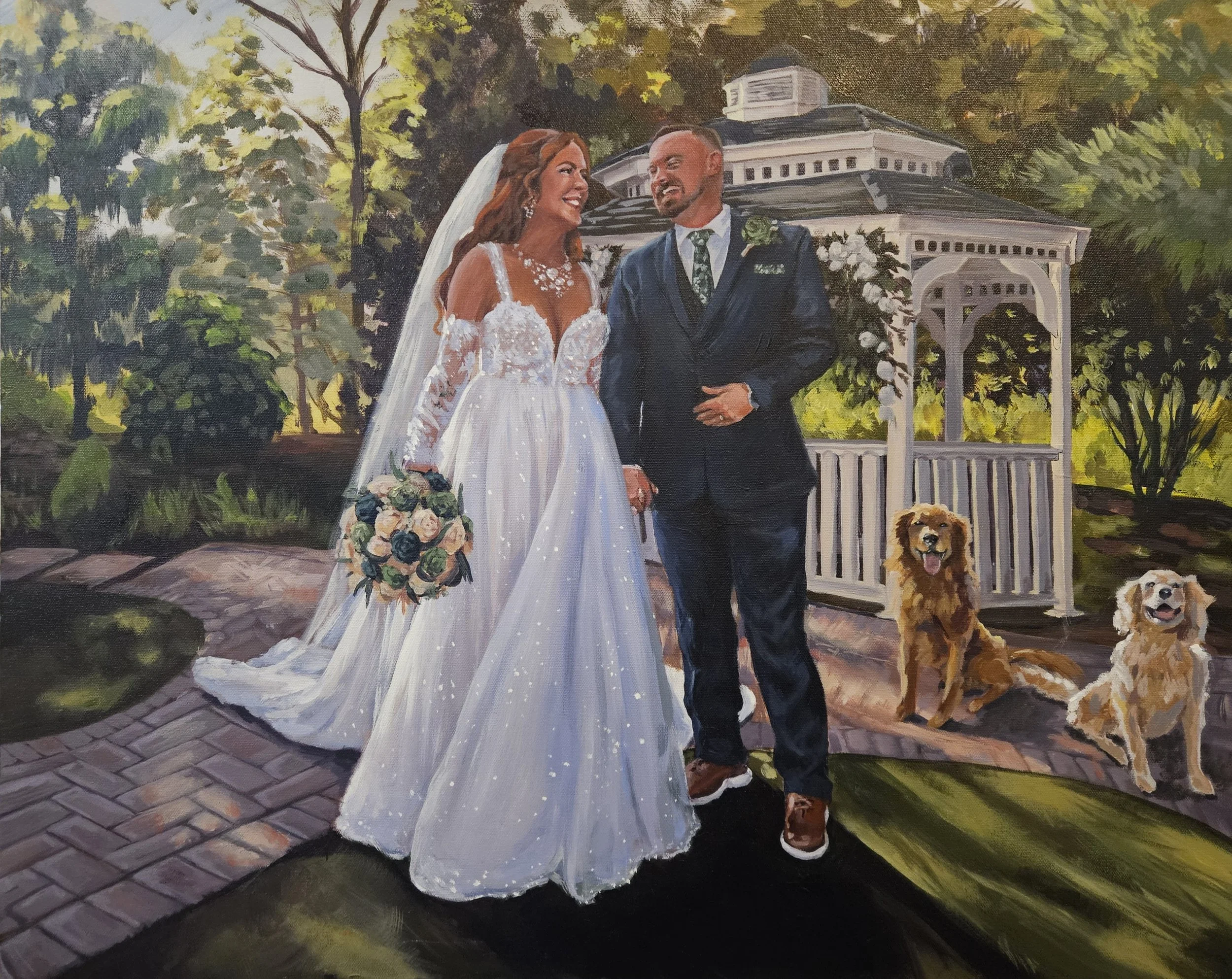 • A 16×20” custom in-studio painting created after the wedding from photos captured by your photographer, then shipped directly to you after the designated studio period.
